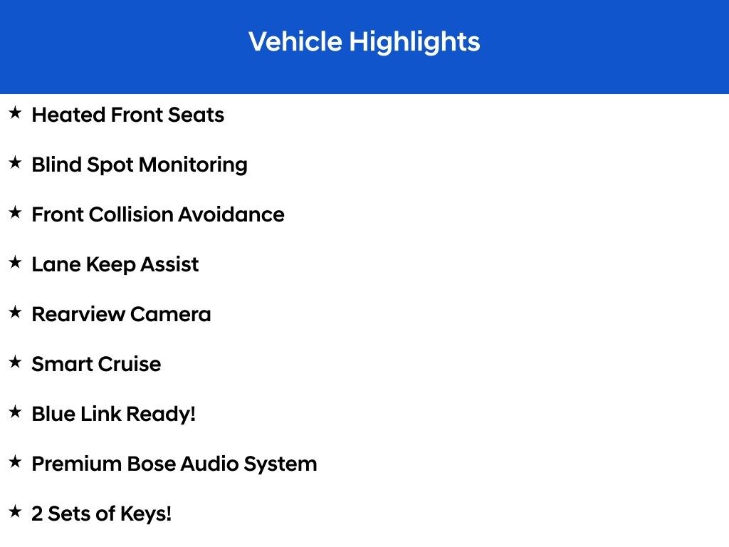 - Emergency communication system: Blue Link Connected Car Service (3-year complimentary subscription)