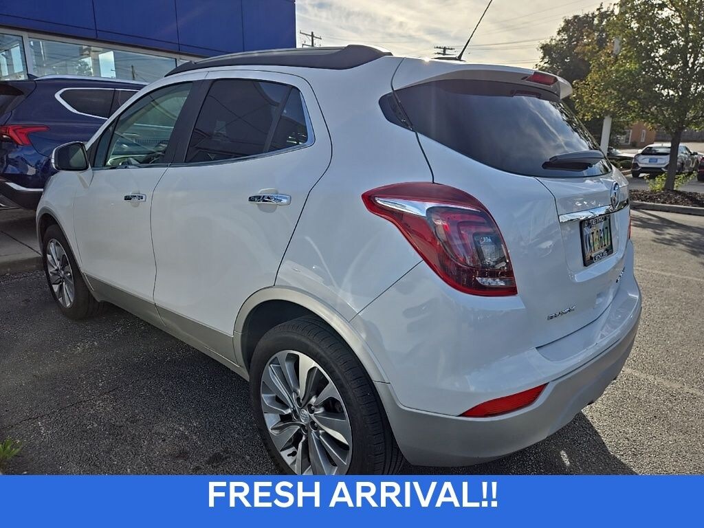 GANLEY GUARANTEED! Free 3mo/3000mi. Powertrain Service Contract!, Local Trade In!, Clean CARFAX, Proximity Key with PUSH BUTTON START, Apple Carplay / Android Auto, Rearview Camera, 2-Way Manual Front Passenger Seat Adjuster, 3.53 Final Drive Axle Ratio, 4-Wheel Disc Brakes, 6 Speakers, 6-Way Power Driver Seat Adjuster, ABS brakes, Air Conditioning, Alloy wheels, AM/FM radio: SiriusXM, Apple CarPlay/Android Auto, Brake assist, Bumpers: body-color, Cloth w/Leatherette Seat Trim, Compass, Delay-off headlights, Driver door bin, Driver vanity mirror, Driver's Seat Mounted Armrest, Dual front impact airbags, Dual front side impact airbags, Electronic Stability Control, Emergency communication system: OnStar Guidance, Exterior Parking Camera Rear, Front anti-roll bar, Front Bucket Seats, Front License Plate Bracket, Front reading lights, Front wheel independent suspension, Fully automatic headlights, Heated door mirrors, Illuminated entry, Knee airbag, Low tire pressure warning, Occupant sensing airbag, Outside temperature display, Overhead airbag, Panic alarm, Passenger door bin, Passenger vanity mirror, Power door mirrors, Power driver seat, Power steering, Power windows, Preferred Equipment Group 1SB, Premium audio system: IntelliLink, Radio data system, Radio: Buick IntelliLink AM/FM Stereo, Rear seat center armrest, Rear side impact airbag, Rear window defroster, Rear window wiper, Remote keyless entry, Ride & Handling Suspension, Roof rack: rails only, Satin Nickel Metallic Lower Exterior Accent Color, Security system, SiriusXM Satellite Radio, Speed control, Speed-sensing steering, Split folding rear seat, Spoiler, Steering wheel mounted audio controls, Tachometer, Telescoping steering wheel, Tilt steering wheel, Traction control, Trip computer, Turn signal indicator mirrors, Variably intermittent wipers, Wheels: 18" Machined-Face Alloy, 2 Sets of Keys!. Buick Encore 2017 White Frost Tricoat Preferred Clean CARFAX.