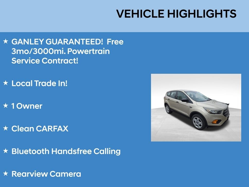 GANLEY GUARANTEED! Free 3mo/3000mi. Powertrain Service Contract!, Local Trade In!, 1 Owner, Clean CARFAX, Bluetooth Handsfree Calling, Rearview Camera. Ford Escape 2018 White Gold S CARFAX One-Owner. Clean CARFAX.