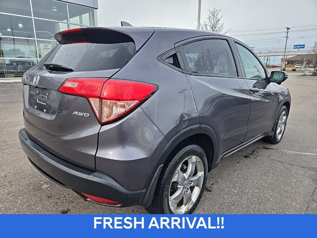 GANLEY GUARANTEED! Free 3mo/3000mi. Powertrain Service Contract!, Local Trade In!, 1 Owner, Bluetooth Handsfree Calling, Power Sunroof / Moonroof, Heated Front Seats, Rearview Camera, 4-Wheel Disc Brakes, 5.436 Axle Ratio, 6 Speakers, ABS brakes, Air Conditioning, Alloy wheels, AM/FM radio, AM/FM/CD Audio System (180 Watts), Automatic temperature control, Brake assist, Bumpers: body-color, CD player, Cloth Seat Trim, Driver door bin, Driver vanity mirror, Dual front impact airbags, Dual front side impact airbags, Electronic Stability Control, Exterior Parking Camera Rear, Front anti-roll bar, Front Bucket Seats, Front Center Armrest, Front fog lights, Front reading lights, Front wheel independent suspension, Fully automatic headlights, Heated door mirrors, Heated Front Bucket Seats, Heated front seats, Illuminated entry, Low tire pressure warning, Occupant sensing airbag, Outside temperature display, Overhead airbag, Panic alarm, Passenger door bin, Passenger vanity mirror, Power door mirrors, Power moonroof, Power steering, Power windows, Radio data system, Rear anti-roll bar, Rear window defroster, Rear window wiper, Remote keyless entry, Security system, Speed control, Split folding rear seat, Spoiler, Steering wheel mounted audio controls, Tachometer, Telescoping steering wheel, Tilt steering wheel, Traction control, Trip computer, Turn signal indicator mirrors, Variably intermittent wipers, Power Liftgate. Honda HR-V 2016 Modern Steel Metallic EX CARFAX One-Owner. Odometer is 30088 miles below market average!