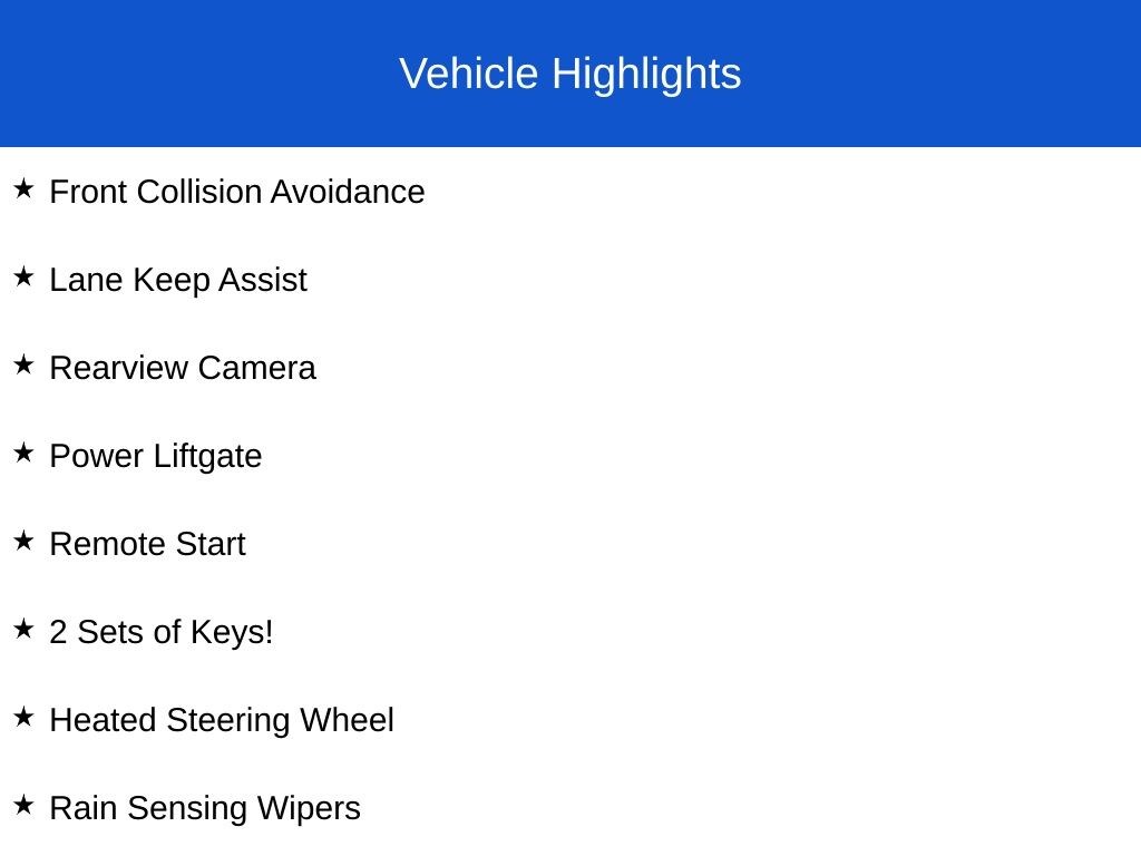 - Adaptive Cruise Control: Adaptive Cruise Control (ACC) with Low-Speed Follow