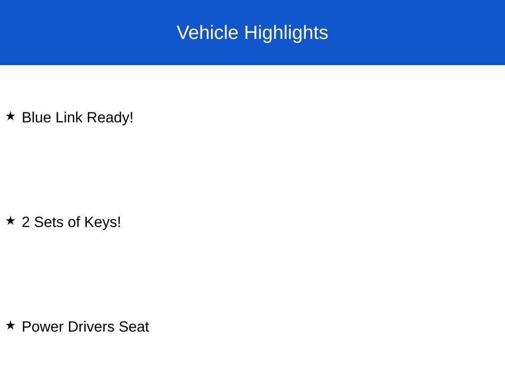 - Emergency communication system: Blue Link Connected Car Service (3-year complimentary subscription)