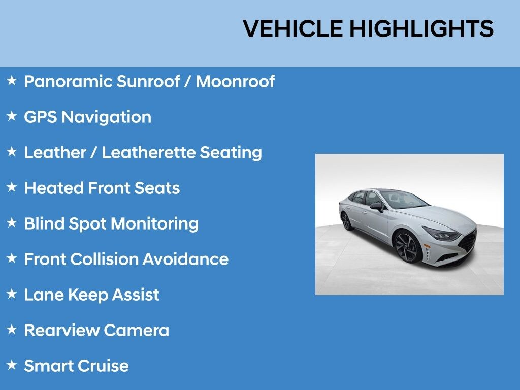Hyundai Certified Pre-Owned Vehicle, Unbeatable 10 Year / 100k Mile Powertrain Warranty!, Sold New & Serviced Right Here!, Local Trade In!, 1 Owner, Proximity Key with PUSH BUTTON START, Apple Carplay / Android Auto, Panoramic Sunroof / Moonroof, GPS Navigation, Leather / Leatherette Seating, Heated Front Seats, Blind Spot Monitoring, Front Collision Avoidance, Lane Keep Assist, Rearview Camera, Smart Cruise, Blue Link Ready!, Premium Bose Audio System, 2 Sets of Keys!, Black w/Leatherette/Suede Combination Seating Surfaces. Hyundai Sonata 2023 Serenity White SEL Plus Certified. Hyundai Certified Used Vehicles Details: