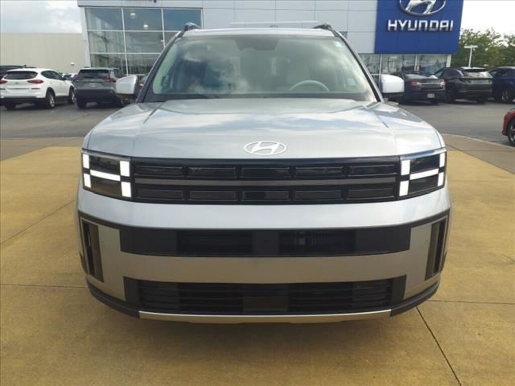 AWD, Gray Leather, 12 Speakers, 3rd row seats: bench, 4-Wheel Disc Brakes, ABS brakes, Air Conditioning, Alloy wheels, AM/FM radio: SiriusXM, Apple CarPlay & Android Auto, Auto High-beam Headlights, Auto-dimming Rear-View mirror, Automatic temperature control, Axle Ratio: 3.316, Brake assist, Bumpers: body-color, Cargo Cover/Screen, Cargo Net, Carpeted Floor Mats, Delay-off headlights, Driver door bin, Driver vanity mirror, Dual front impact airbags, Dual front side impact airbags, Electronic Stability Control, Emergency communication system, Exterior Parking Camera Rear, First Aid Kit, Four wheel independent suspension, Front anti-roll bar, Front Bucket Seats, Front Center Armrest, Front dual zone A/C, Front reading lights, Fully automatic headlights, Garage door transmitter: HomeLink, Heated & Ventilated Front Bucket Seats, Heated door mirrors, Heated front seats, Heated rear seats, Heated steering wheel, Illuminated entry, Knee airbag, Leather Seat Trim, Leather steering wheel, Low tire pressure warning, Memory seat, Navigation System, Occupant sensing airbag, Option Group 01, Outside temperature display, Overhead airbag, Overhead console, Panic alarm, Passenger door bin, Passenger vanity mirror, Power door mirrors, Power driver seat, Power Liftgate, Power moonroof, Power passenger seat, Power steering, Power windows, Radio: AM/FM/HD Bose Premium Audio System, Rain sensing wipers, Rear anti-roll bar, Rear seat center armrest, Rear side impact airbag, Rear window defroster, Rear window wiper, Remote keyless entry, Security system, Speed control, Speed-sensing steering, Split folding rear seat, Spoiler, Steering wheel mounted audio controls, Tachometer, Telescoping steering wheel, Tilt steering wheel, Traction control, Trip computer, Turn signal indicator mirrors, Variably intermittent wipers, Ventilated front seats, Wheels: 20" x 8.5J Alloy, AWD, Gray Leather. Hyundai Santa Fe 2024 Shimmering Silver Pearl Limited