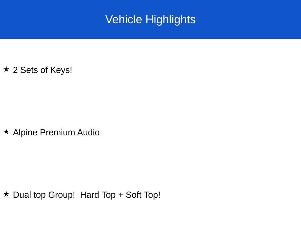 Pros: Fun- Convertible for Off Road and Northeast weather. Great Pentastar engine and Willies Package options Great Style and modern convenience of Bluetooth. Makes for a good commuter for backroads and bad weather. Our 7th Wrangler. Good/Bad: Tires and suspension on Willies Model is just want I wanted but ‘newbies’ beware of bouncing and veering as aggressive tread on tires pulls Jeep around. Not intended to drive highways at 90mph if you’re not experienced with off road tires etc. My wife loved her unlimited with longer wheelbase but did not want to drive 2 dr wrangler for these issues. Cons: I hate the default engine shut off in traffic/stops. Default “should” be to turn feature on. Doesn’t seem to save a dime on gas or improve MPG. Very disappointed with this. Otherwise- MPG not better than previous models Backseat is not for adults but then .... it’s a 2dr wrangler Did I mention engine shut off default is terrible?… - 5.0